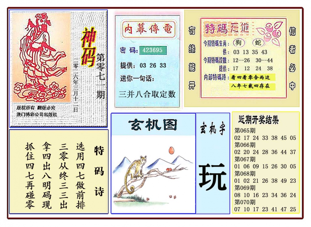 071期:澳门神算子『黄大仙神码』